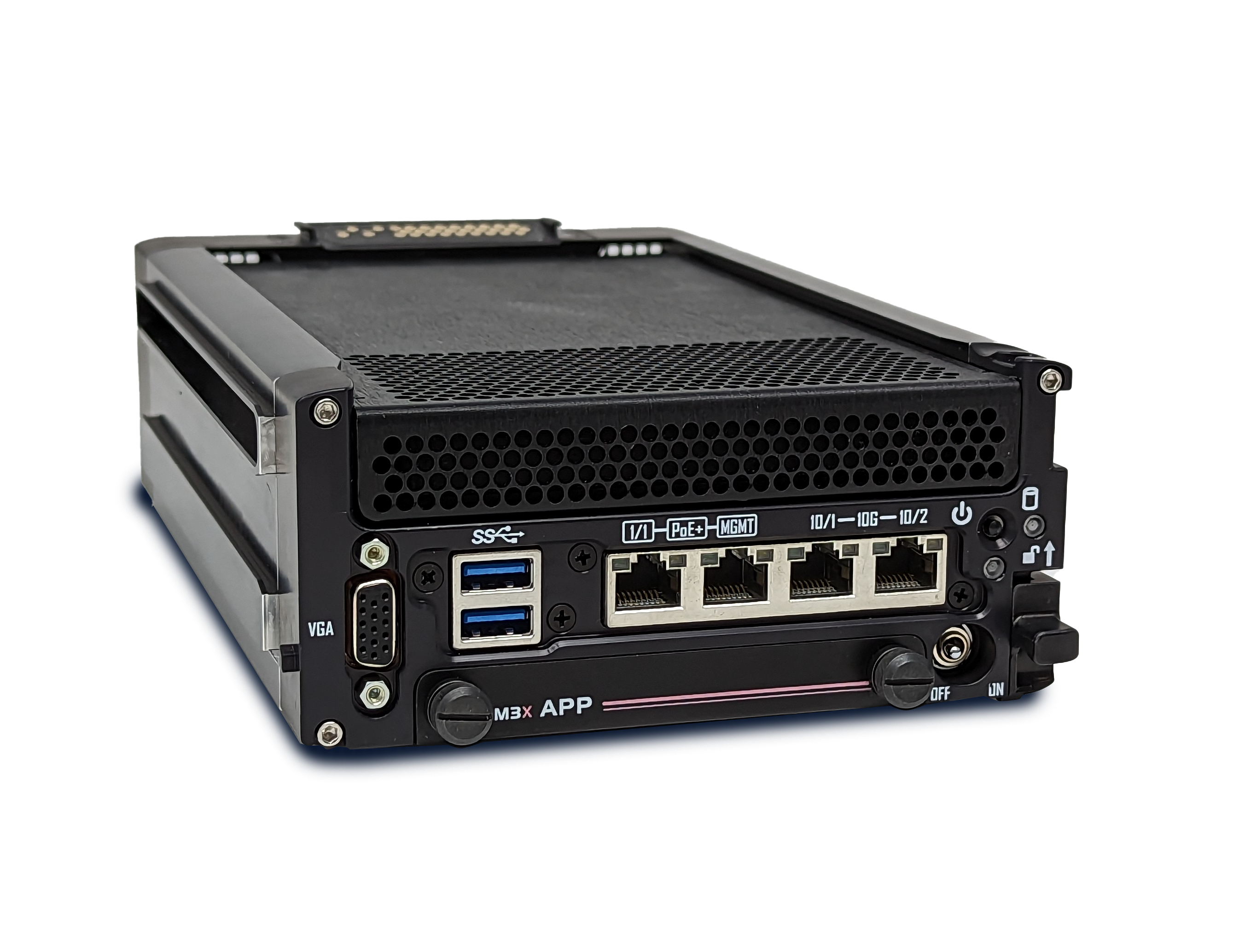 The M3X-APP server module is the core of any tactical network deployment. The powerful up to 16 core Intel Xeon processor backed by 128GB of DDR4 RAM ensures that M3X-APP can support multiple applications in a single device.